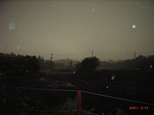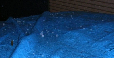 1センチ位の雹が約20分位続いた・・・(辺りは真っ暗で写真を撮ったが雹がちゃんと写らない・・・)