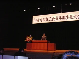 今日は正午より印旛郡栄町安食にある文化ホールで商工会青年部の主張大会が行われ我が青年部の代表者の応援で皆が集まった。