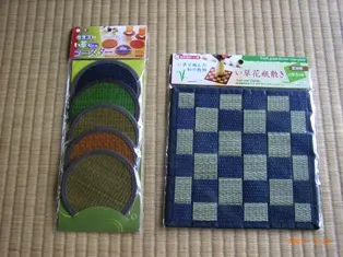 近くの100円ショップに買い物に行き、何気なく和小物のコーナーを覘いてみると沢山のミニ畳関連の物が置いてあり・・・これを作ったらいくら鰍ゥるな・・・なんて思ってしまう。