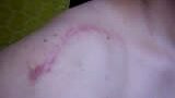 今回は15針、大体10cm位の痕ができ前回の傷とあわせて右肩にアルファベットの《T》 の字が出来たようです。