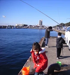 朝風呂に入り、朝食をとり、近くの漁港まで釣りへ。