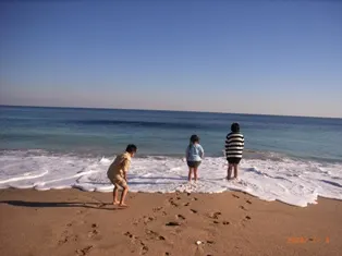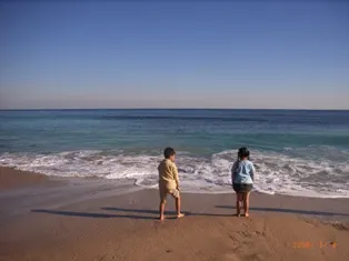 帰り道、道の駅等でお土産を買いながら途中勝浦の海辺へ車を止め貝拾い&遊びの時間。
