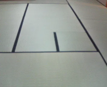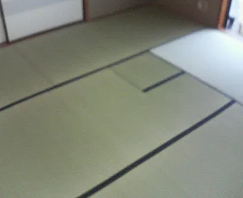 生徒さんに教えるよう普通の8畳間に炉を切って茶室として使用しているのだが、流派にもよるが普通、黒の無地ベリ(幅1寸)でやるところを江戸間で狭いので少しでも広く使えるよう黒無地の5分ベリにしてほしいと言う事だった。