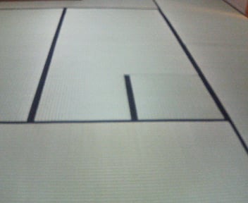 生徒さんに教えるよう普通の8畳間に炉を切って茶室として使用しているのだが、流派にもよるが普通、黒の無地ベリ(幅1寸)でやるところを江戸間で狭いので少しでも広く使えるよう黒無地の5分ベリにしてほしいと言う事だった。