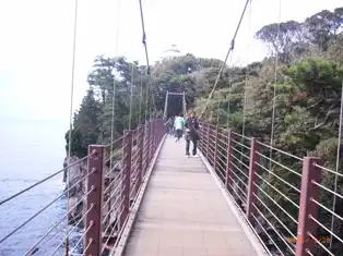 ここには門脇の吊り橋というものがあり、海からの高さ23m、橋の全長48mの断崖に架かる吊り橋である。