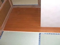 タンスと畳の間には角材が置いてあり畳は寄せが無いので隙間だらけ。