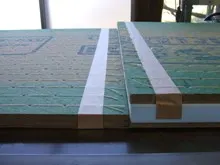 新畳にするに当たって薄手でも丈夫で持つ物をという事でボードは3層式のあつらえ品、畳表にはダイケン和紙表を使用することに。