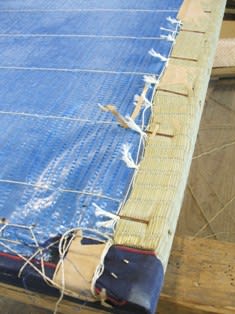 今日のお客様の家に入っている畳は一層式のオールボードでカマチは段ボール用のホチキス止め、返しは逢着機で縫ってあるのだが糸締めが強く、隅はボロボロ