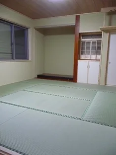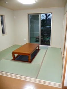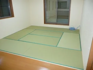 床の間部屋がメーター間(京間用オールボード使用)、2階が俗に言う団地サイズ(ワラ畳床に和紙表『銀白』使用)。