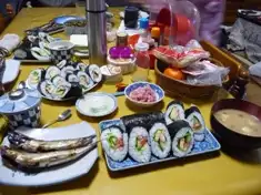 仕事から帰ると、カミさんと娘たちが太巻きを作ってくれてました。