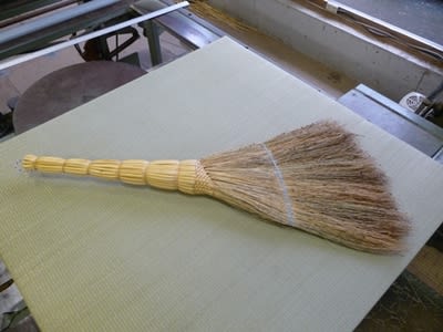 敷き込みに行く前、天気を見ながら包丁を研いでいると船橋の森畳店さんが現場のついでに寄ってくれ、 おじいさん手作りの箒 を頂いてしまった。