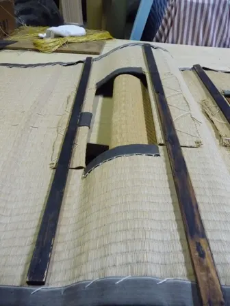 この町駕籠の茣蓙作りは仕事が終わってから一人、夜なべに少しずつやっておりました。