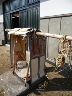 房総のむら入り口、総屋(ふさや)の中に常設展示してある 《町駕籠》 の補修を頼まれました。