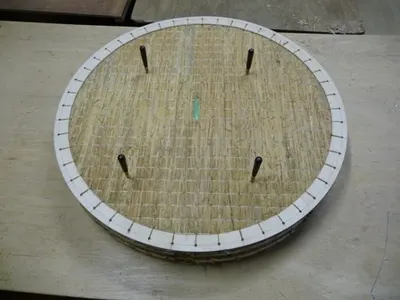 絎け縫いが終わったら板入れ円形二畳台の完成です!