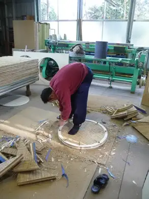 白中紋55紋、直径2尺4寸5分の板入れ円形二畳台、製作スタートです。