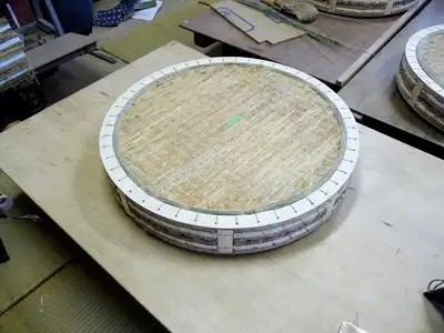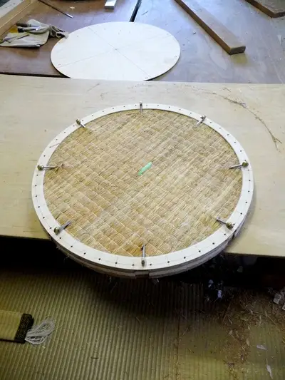 昨年、神奈川技術講習会にて板垣先生より円柱畳を教わって参りましたので以前から作ってみたかった板入れの円形二畳台に挑戦したのです。