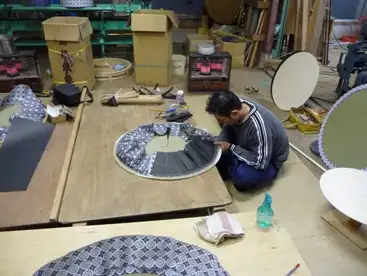 まずは表張り合わせ、紋縁合わせ、円形ゲージ、頭板作りです。