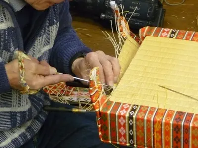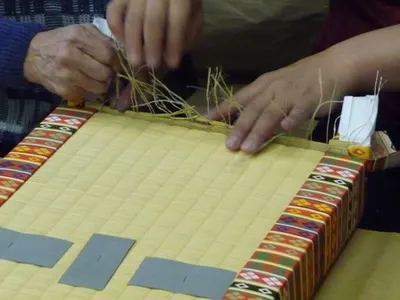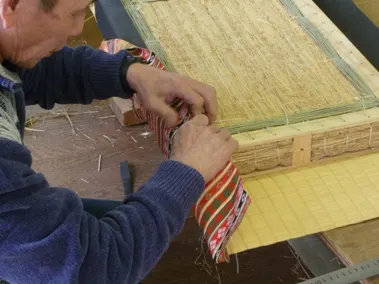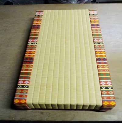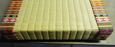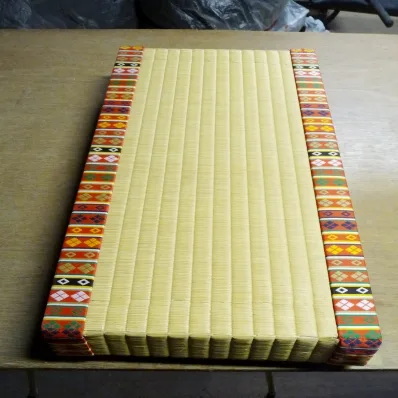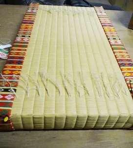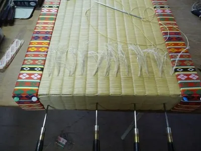 その後、裏茣蓙を台座に取り付け、カマチ部分のイグサを台の丈寸法に合わせ抜き取ります。