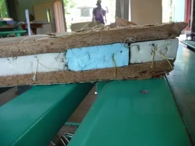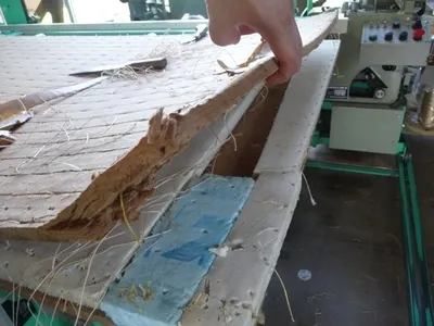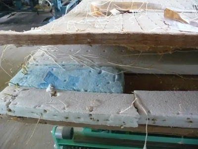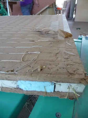 それを敷き込んだ時にやっぱり恐くなって、現場で急遽スタイロを差込み、適当に縫いからげ上下を反対に入れたのでしょう。