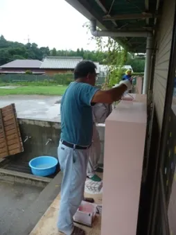 印西市内の(市立)幼稚園、保育園、小学校、中学校に直して欲しいもの、新しく作って欲しい物の要望を聞き、材料費のみ市が負担で組合員が奉仕作業をする活動を毎年8月22日に行なっています。