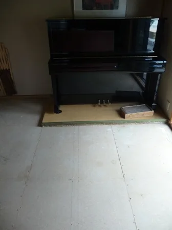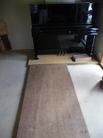 畳を引き上げたところに荷物片し用の畳を敷いて、その上にコンパネを敷きピアノを移動します。