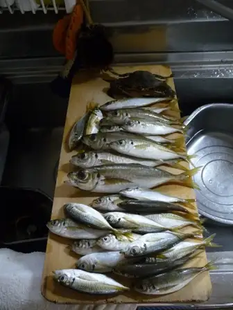肝心の釣果はと言うと、24cmを頭に12cmサイズまでの鯵が30枚(10㎝以下は逃がす)