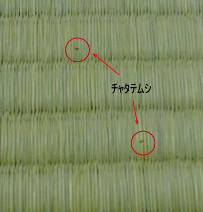 万一、畳にカビが生えてしまった場合など、そのカビを餌とするチャタテムシが畳に集まり、畳に付いて繁殖するといった過程になります。