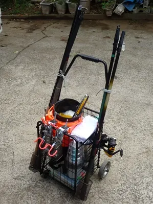 私の釣り道具セット、釣り場でこのカートを見かけ、集魚灯をたいていたら(使っていないときもありますが)それが私です(笑)