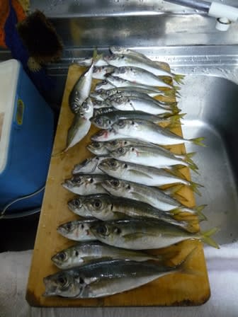 アジ36匹(23~16cm)、フグ6匹、??1匹(鹿島で釣りをして15年以上になりますが初めて見た魚、図鑑で見ましたが解りませんでした)