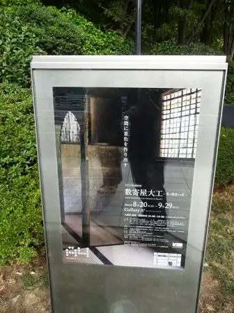 目的は東京江東区新砂の鋳?H務店東京本店、鋳?蜊H道具館巡回展で今月29日まで開催されている数寄屋大工~美を創造する匠~の展示会です。