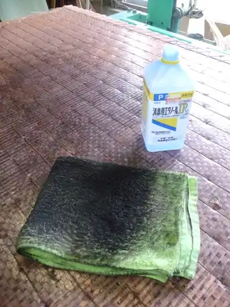 聡恚@でカビを取り、消毒用エタノールで殺菌します。