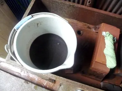 拭き取りをした雑巾を絞るとバケツに墨を入れたようです。