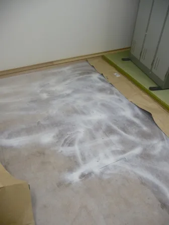 畳を駅の中へ運び込み ( 相変わらず、何故畳屋が駅で畳を運んでいるの??という視線が・・・ ) まずは部屋の聡怐iカビの処理)です。