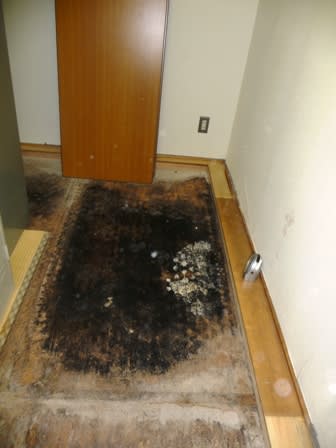 畳を持ち上げると噎せるほどの黒カビ、健康にも好くありません