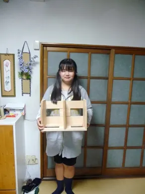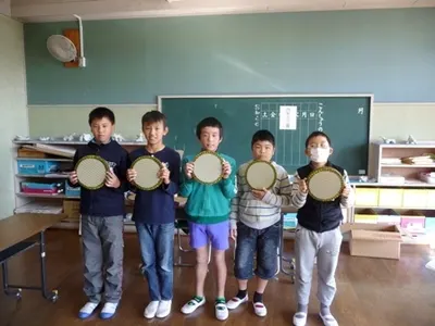 自分の力で作り上げた世界で一つの円形ミニ畳、お父さんやお母さんに自慢して大事に使ってもらえたらと思います。