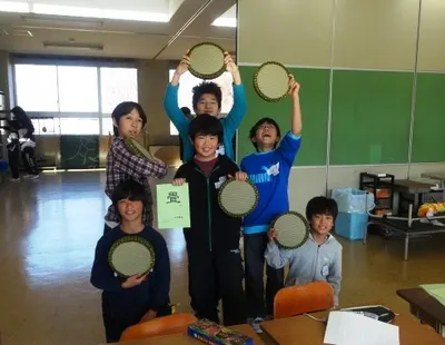 自分の力で作り上げた世界で一つの円形ミニ畳、お父さんやお母さんに自慢して大事に使ってもらえたらと思います。