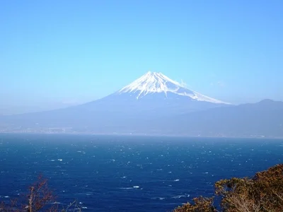 戸田(へだ)にある出逢い岬より富士山を望む。