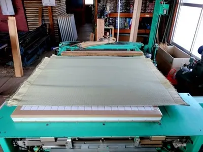 使用した畳表は、熊本県八代市イ草農家&畳表織人、深川俊一さんの一品、綿々Wの目積表です。