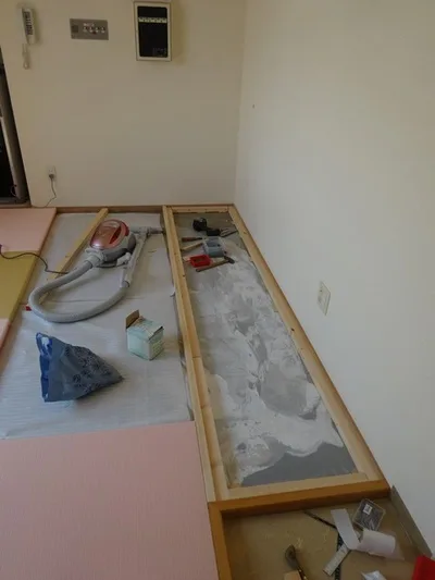 変形だった場所(幅2尺)の部分に寄木&タルキで下地を作ります。