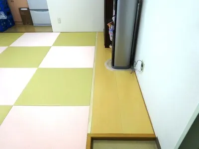そんな、ダイケン清流カラー、薄桜色&黄金色を使った2色使いのヘリ無し半畳和室、施工例でございました。