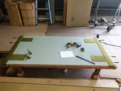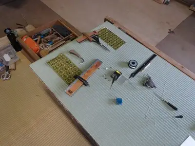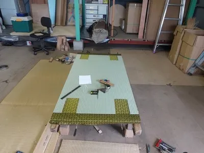 先週、お世話になっている畳材屋さんの依頼で佐倉市の畳屋さんから、ワラ畳(1寸厚)四天付礼盤の張り替えを頼まれました。