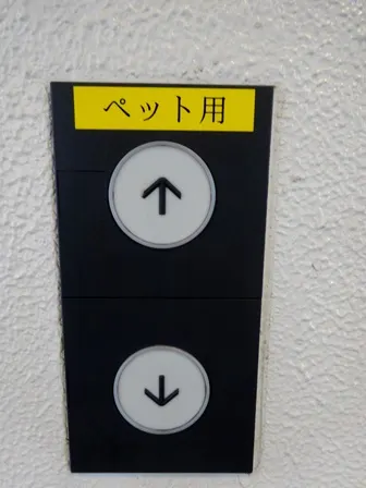 中に入ると行先の階を押す前にペットボタンを押してくださいと書いてありました。