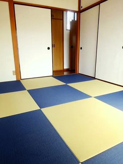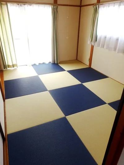 一見、青と黄色の組み合わせに見えますが、黄色に見える畳は若草色と言って緑と白の中間色です。(・・・写真って難しい )