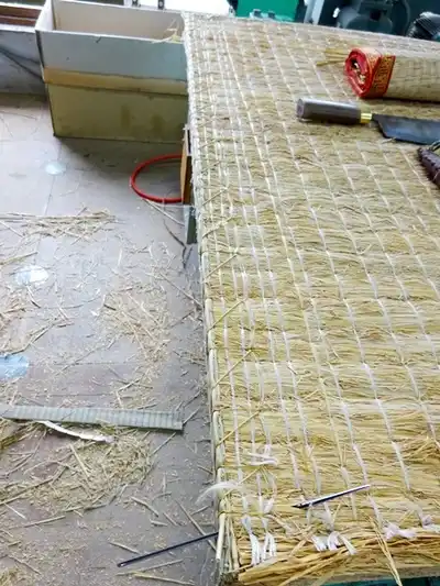 経年劣化の為、畳床がヘタっていて応急処置の縫い止め加工です。