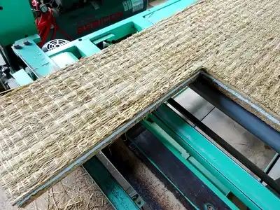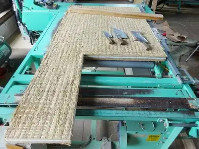 畳床を寸法に裁断する前に畳床が膨らまないようしっかりと縫い止めします。