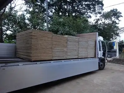 こちらは先日早朝5時半、君津市より春日製畳さんが畳床の補充納品に来て頂きました。