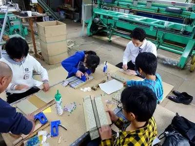 畳1枚が仕上がるまでを見てもらった後は恒例のミニ畳づくりです。
