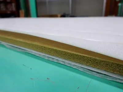 裏シートを切り取り、畳表を巻いても平らになるようにします