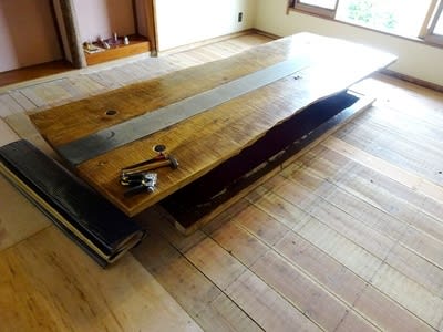 10畳間の真ん中は足を下すため掘り下げ(堀コタツではない)、約8尺の動かない木枠付きです。