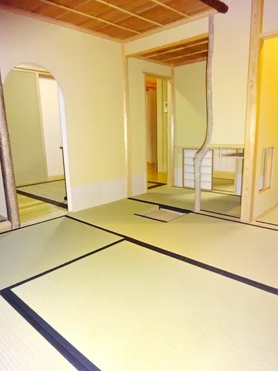 6畳間大炉から8畳茶室を望む